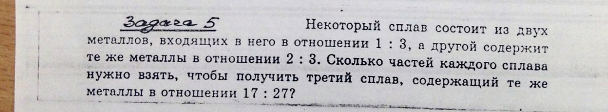Получим третий сплав из (17+27=44) частей, содержащий те же металлы в отношении 17:27.