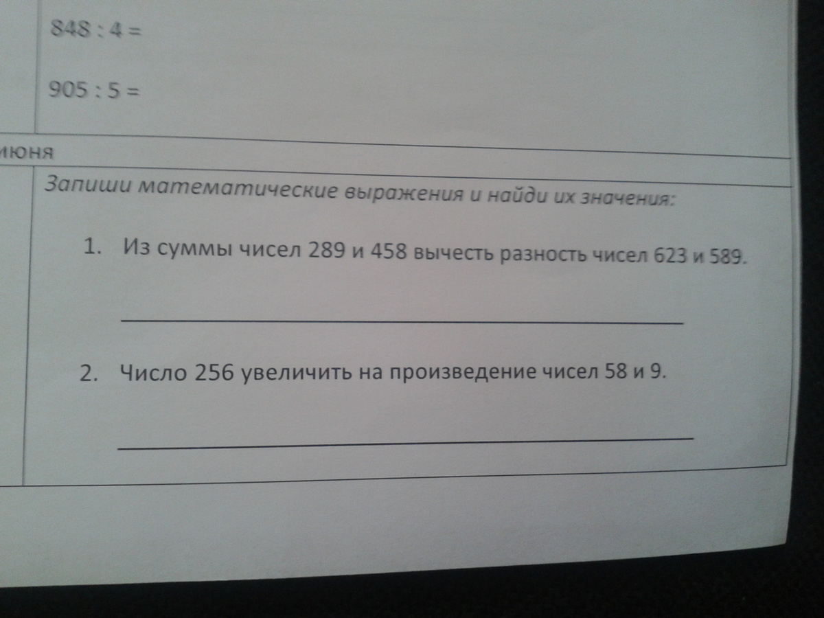1)289+458=747 \ 623-589=34 \ 747-34=713 \  \ 1)58*9=522 \ 256+522=778