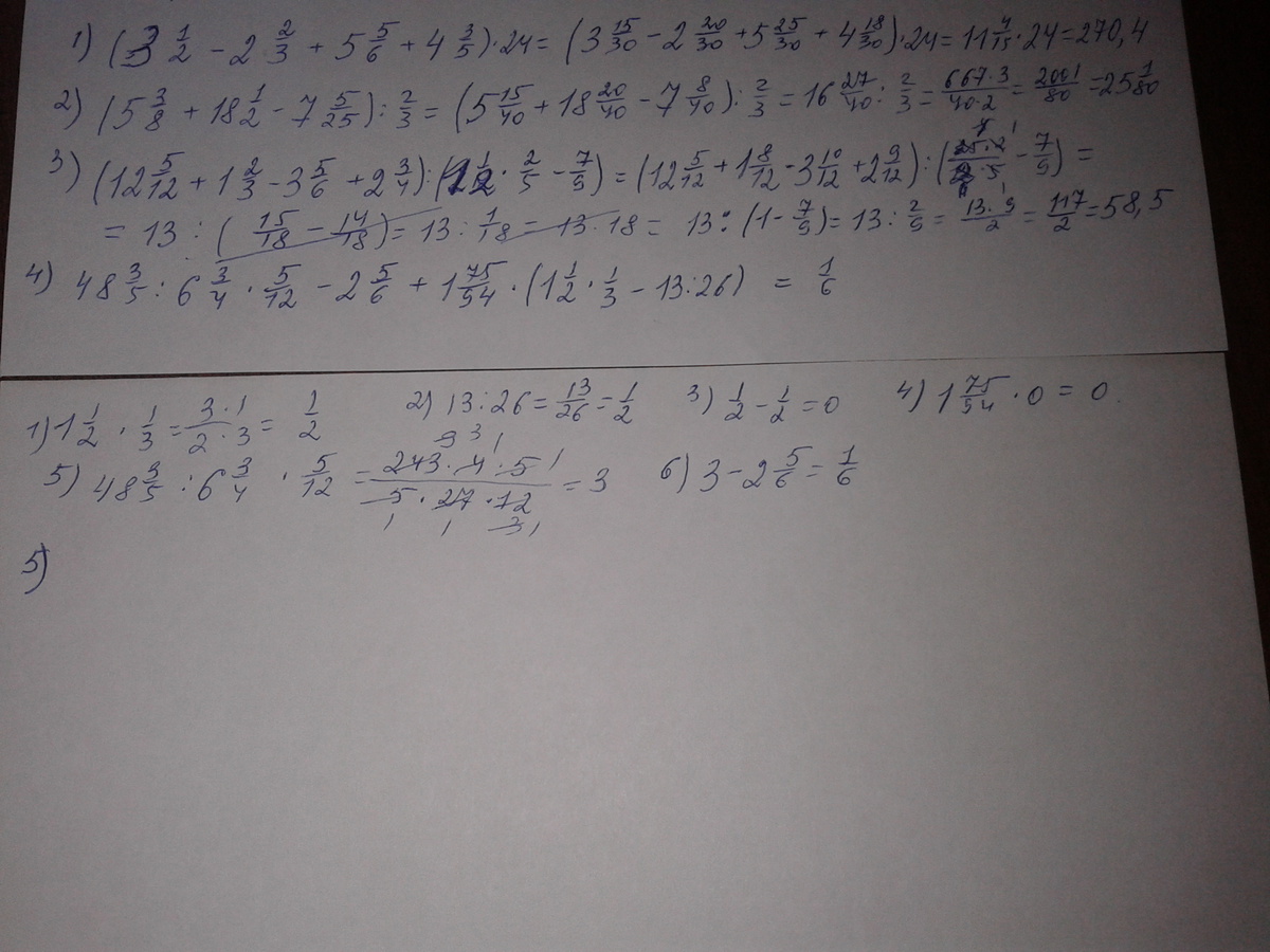 1) (3 1/2-2 2/3+5 5/6+4 3/5)*24