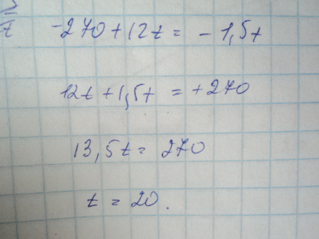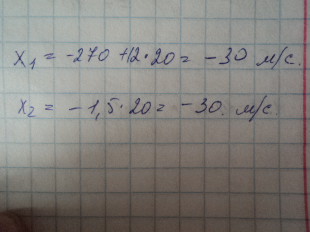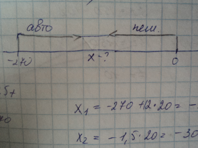 движение грузового автомобиля описываеться уравнением X1=-270+12t, а движение пешехода уравнением X2=-1,5с какими скоростями и в каком напровление они двигались?когда и где они встретились?