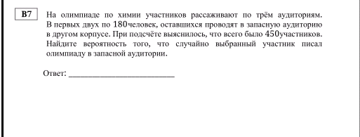 Для начала найдем сколько человек попадут в запасную аудиторию.
