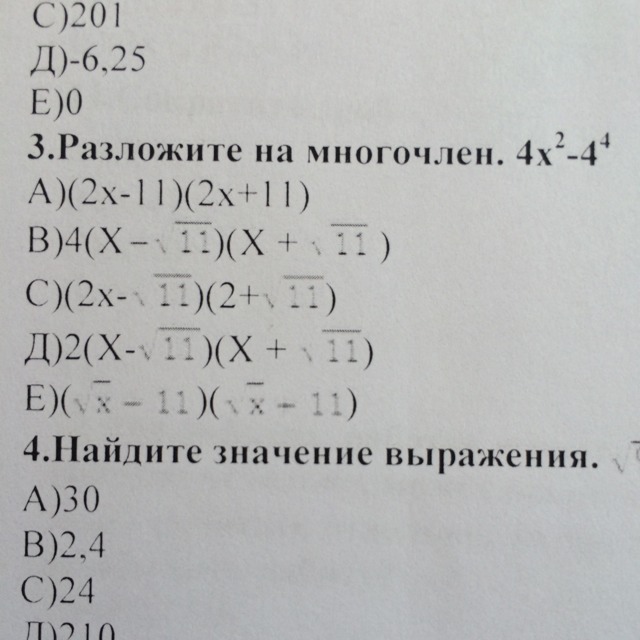 4х²-44=4*(х²-11)=4*(х-√11)*(х+√11)
