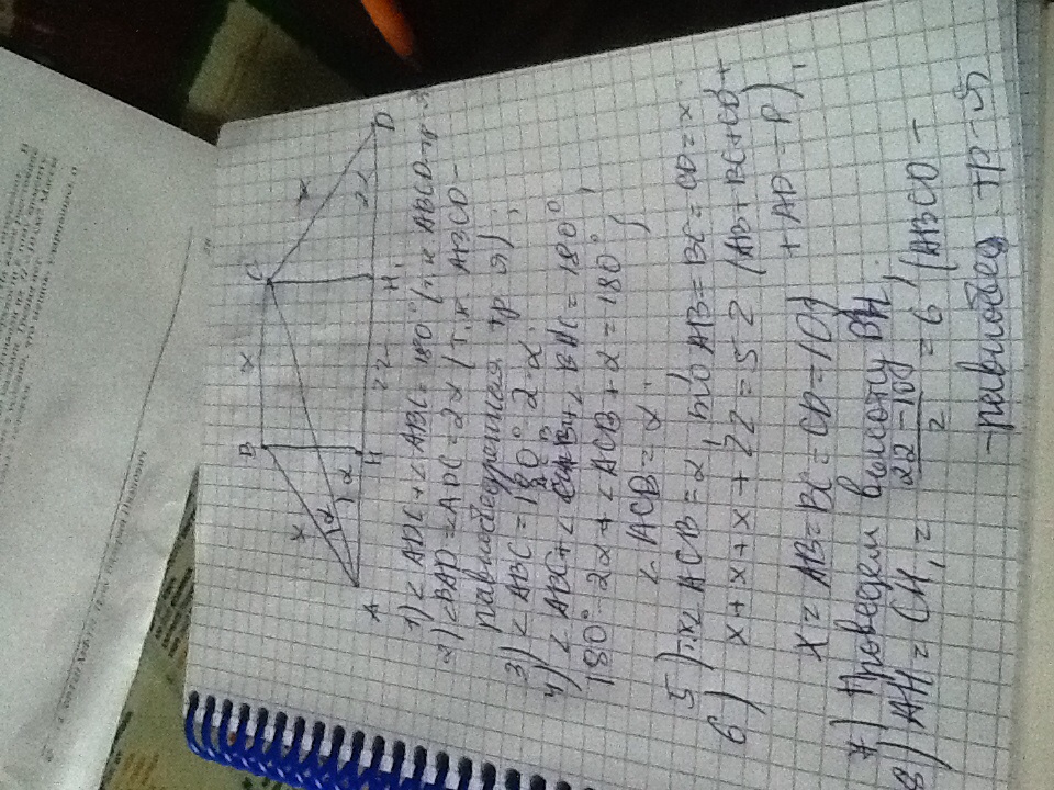 Диагональ равнобедренной трапеции делить её острый угол пополам. Найдите площадь трапеции, если её периметр равен 52 см, а большее основание 22 см