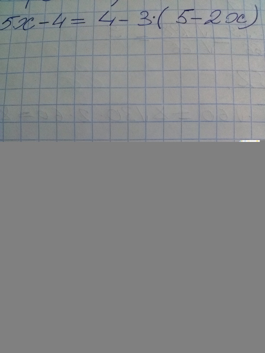 5x-4=4-3*(5-2x)\5x-4=4-15+6x\5x-6x=4-15+4\-x=-7\x=7