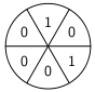 Круг разделён на 6 секторов, и в них расставлены нули и единицы так, как показано на рисунке. За один ход разрешается одновременно увеличить на 1 любые два стоящих рядом числа. Можно ли за несколько таких ходов сделать все числа равными?