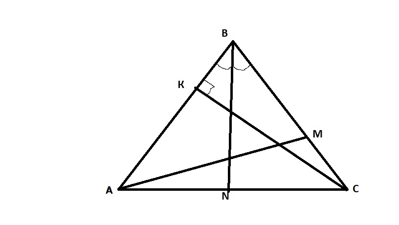 Высота выходит из угла С и заканчивается в точке К на стороне AB. Причем, высота должна "падать" на сторону AC под углом 90 градусов.