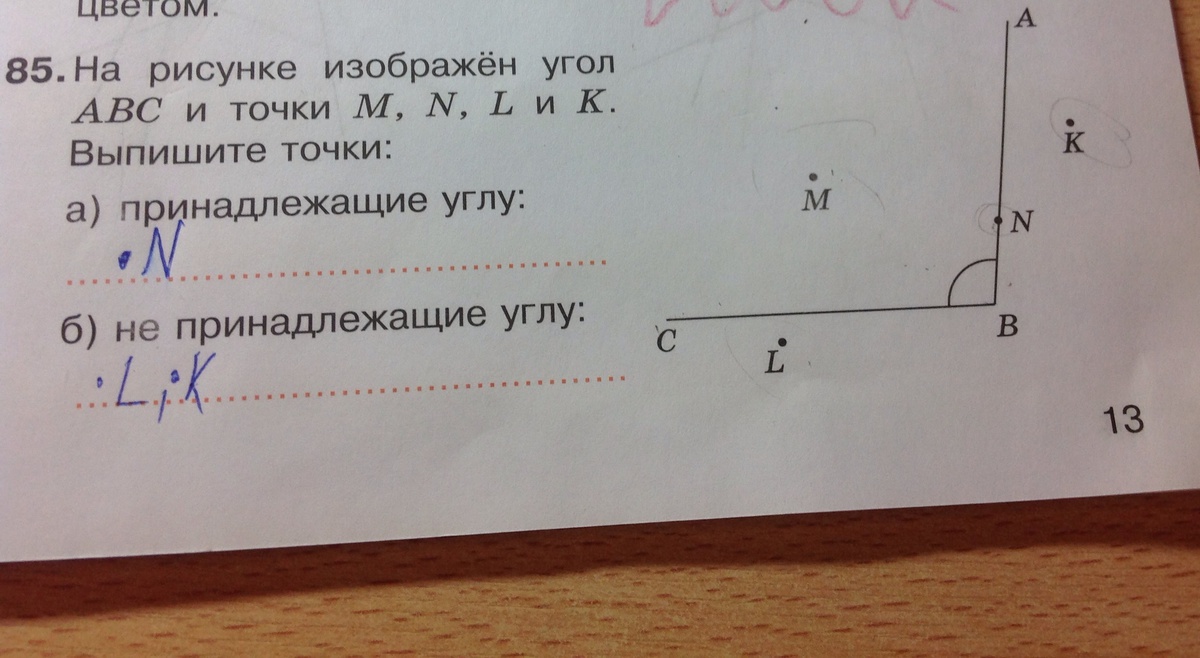 Читайте определение, что называется углом. Углом называется фигура, образованная двумя лучами с общей вершиной и одной из частей плоскости, ограниченной этими лучами. Таким образом, все точки, лежащие на этих лучах и в данной части плоскости,принадлежат углу