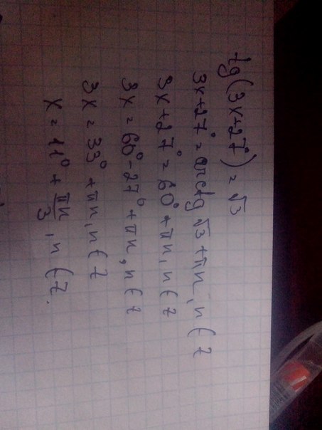 tg (3x+27градусов)=корень из 3