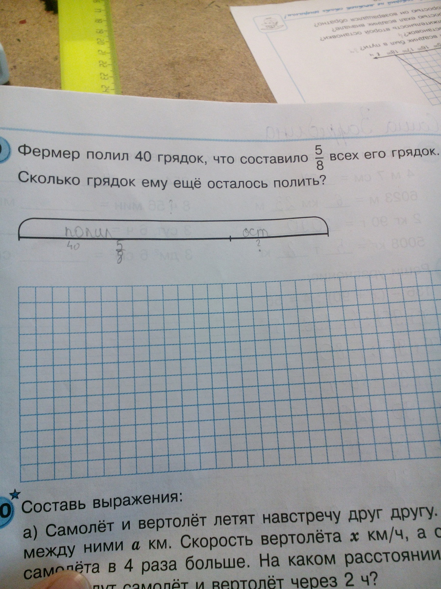 1) 40 × 8 ÷ 5 = 64 (грядок) - всего.
