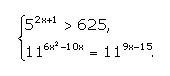 в){5^(2x+1)>6,25 {11^(6x^2-10x)=11^(9x-15)