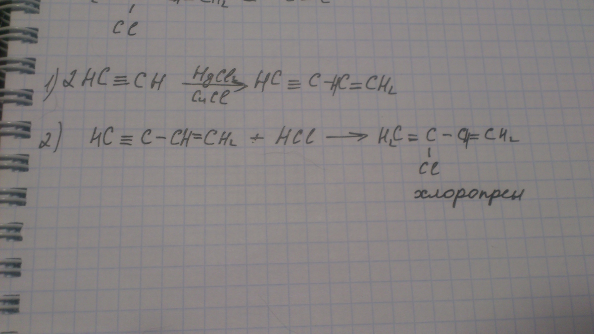 написать уравнение реакций, обеспечивающих получение хлоропрена из ацетилена. какое применение находит хлоропрен