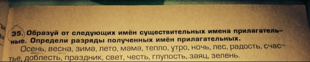 осенний(о.) .весенний(о) ,зимний((о) .летний (о),мамин(п) ,тёплый (к).утренний(о) .ночной(о) .лесной(о) .радостный(к) .счастливый (к).доблестный (к).праздничный(к) ,честный(к) .светлый(к) ,глупый (к),заячий (п).зелёный(к)