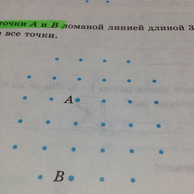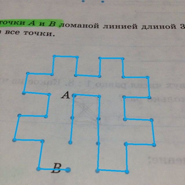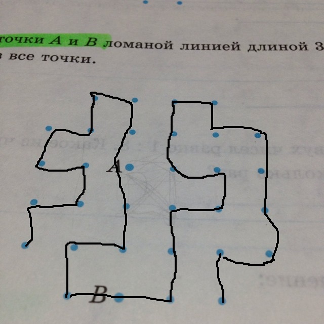 Соедините точки а и б ломаной линией длиной 31 см так чтобы она прошла через все точки