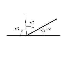 Пусть тупой угол - х градусов, тогда смежный с ним в 9 раз меньше: