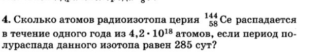 N=N0/2^t/T=4,2*10^18/2^285/365=4,2*10^18/2^0,78=4,2*10^18/1,71=2,5*10^18