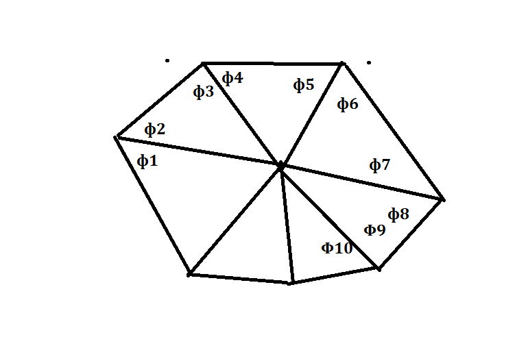 От этой точки проведем прямую к каждой вершине и получим. n треугольников. Каждая прямая делит внутренние углы многоугольника (фk) на 2 угла. То сумма всех образованных углов равна сумме углов данного многоугольника. Сумма двух соседних углов равна.