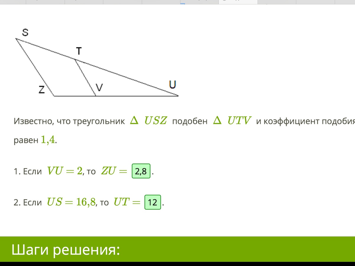 Треугольники UZS и UVT подобны с коэффициентом подобия 1, 4