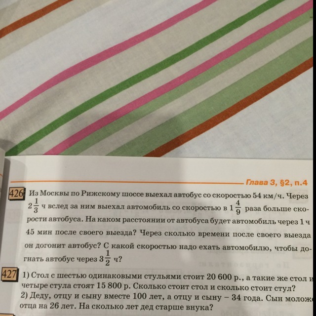 в) С какой скоростью надо ехать автомобилю, чтобы догнать автобус через 3 ¹/2 ч?