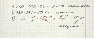 11/16(320-240)=11/16*80=11/2*10=11*5=55кг- капуста