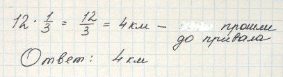 1) 12·(1/3)=12:3=4 км составляет 1/3 пути