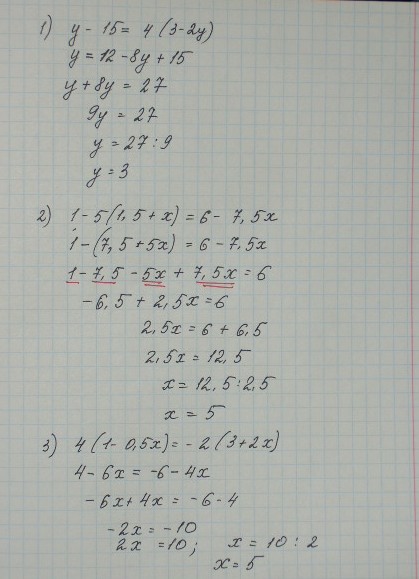 2) 1 - 7,5 - 5X = 6 - 7,5X