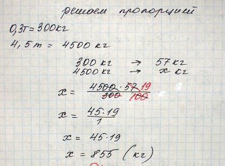 Х = 4500 * 57 : 300 = 855 ( кг )