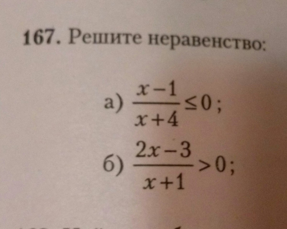 frac{x-1}{x+4} leq 0,; +++(-4)---[1]+++\\xin (-4,1] \  \  \ frac{2x-3}{x+1}>0,; ; +++(-1)---[frac{3}{2}]+++\\xin (-infty,-1)U[frac{3}{2},+infty)