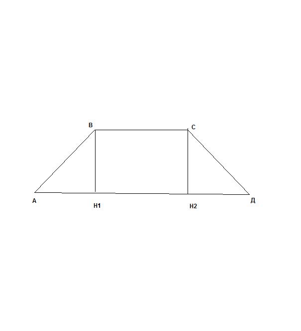 треугольник АВН1=ДСН2 (по гипотенузе и острому углу (трапеция АВСД-р/б => АВ=СД, угол А= углу С)) => Н2Д=АН1= 9 см