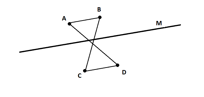 Помогите решить. Даны прямая м и точки A,B.C u D , не принадлежащие ей. Пересекает ли м отрезок АD, если отрезок BC пересекает ее, а отрезки AB и СD не пересекает.