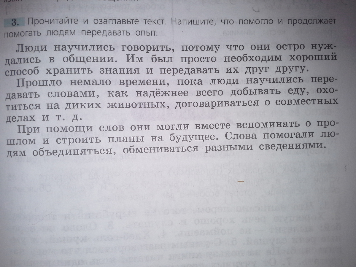 Прочитайте и озаглавте текст. Напишите, что помогло и продолжает помогать людям передавать опыт