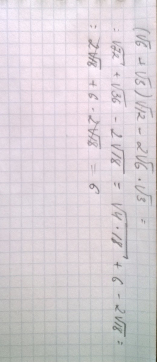 (√6+√3)√12-2√6*√3=√72+√36-2√18=√4+18+6-2√18=2√18+6-2√18=6