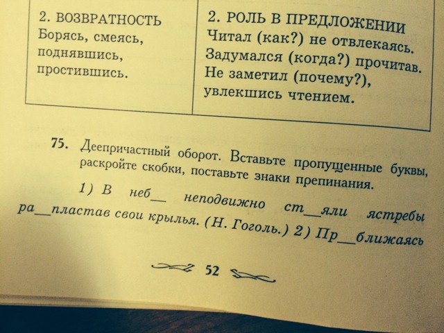 В небе неподвижно стояли ястребы, распластав свои крылья.(Н.Гоголь)