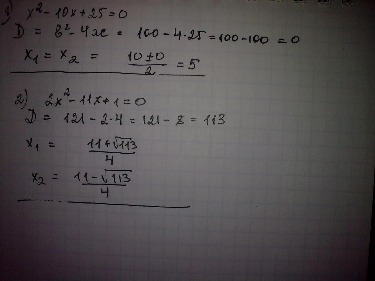 D = (-10)2 - 4·1·25 = 100 - 100 = 0 -одно решение