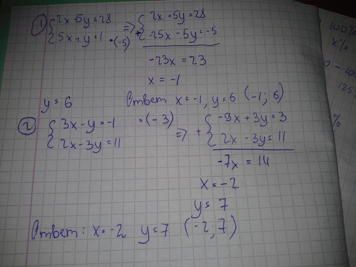 -7х = 14 х = -2 у = 3х+1 = -6+1= -5