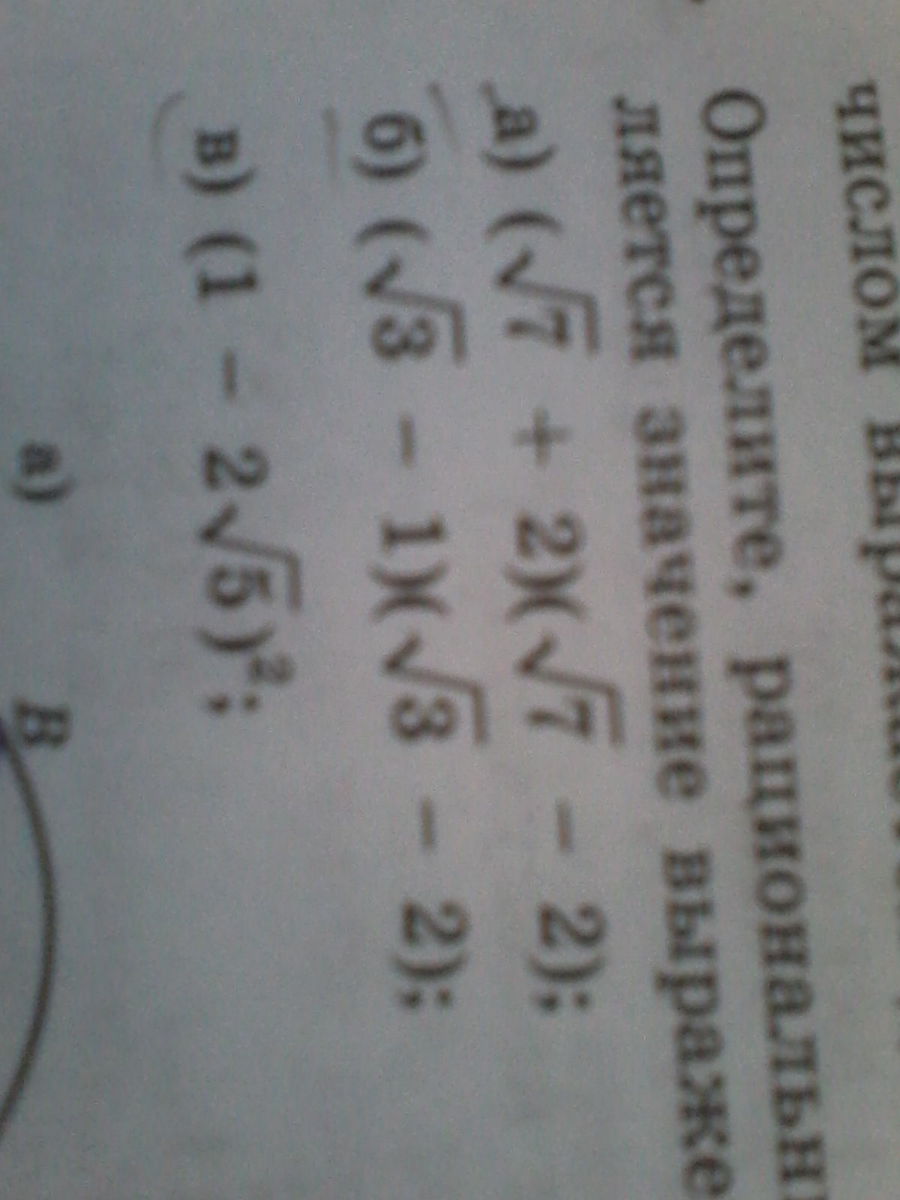 А под б точно правильно а то если корень из 3 умножить на корень из 3 будет 3 а потом получается корень из 3 умножить на минус 2 и получается 3√2 а у вас написано 3√3 и я что то не понела?