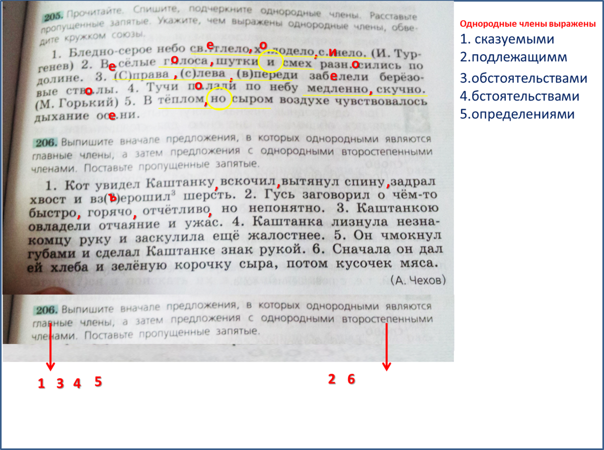 Тучи ползали по небу медленно,скучно.(0,0-в кружочках -.-.-.-) –это однород. Обстоят.