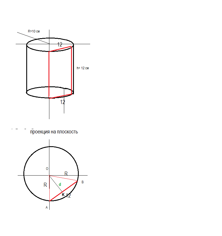 Задача №1. Цилиндр, высота которого равна 12 см, а радиус основания - 10 см, пересечен такой плоскостью, параллельной оси цилиндра, что в сечении получился квадрат.Найдите расстояние от оси цилиндра до секущей плоскости. Задача №2. Учитывая. что V,r и h-соответственно объем, радиус и высота цилиндра, надите V, если r=3 корня из 2 , h=6