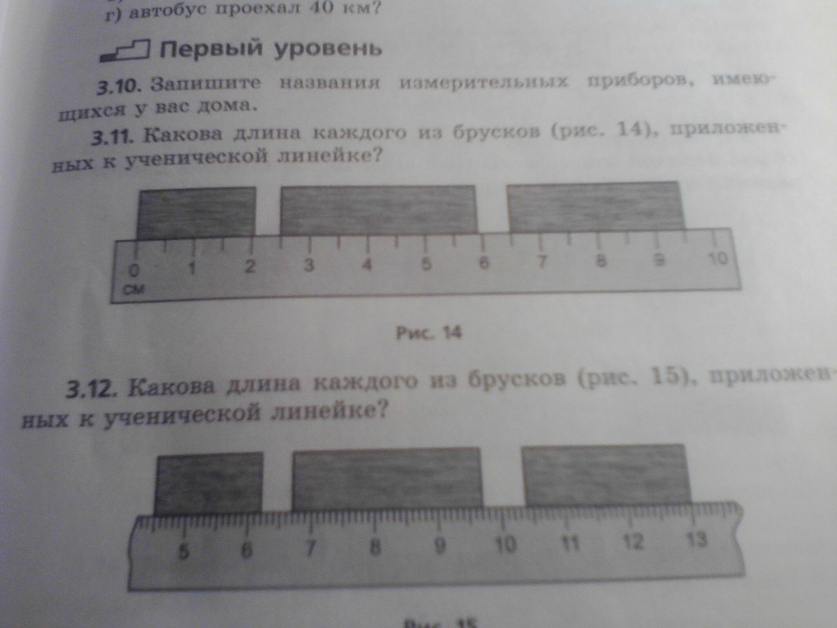 3.11 Какова длина каждого из брусков(рис.14)приложенных к ученической линейке?