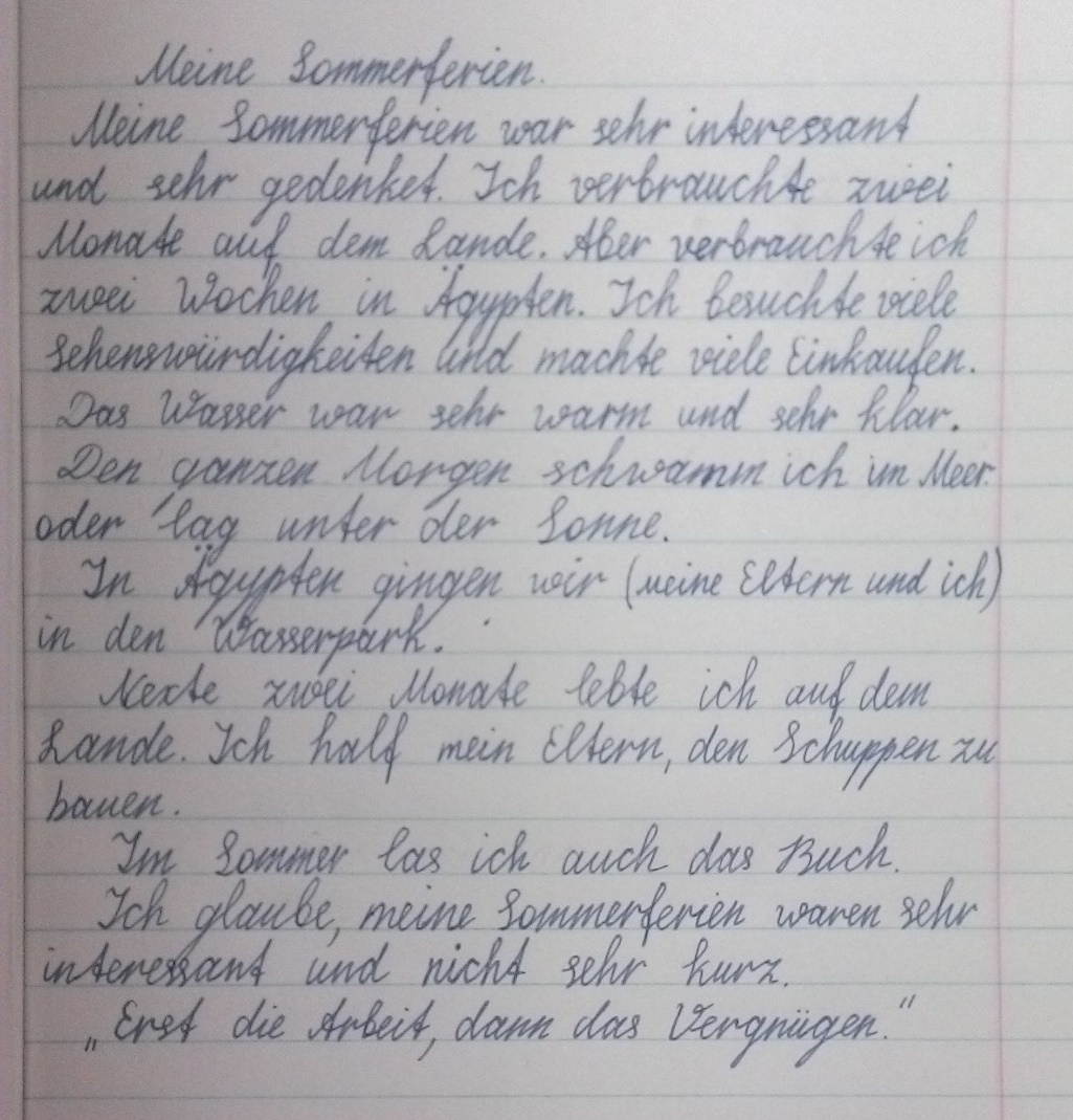 aber verbrauchte-не правильно,нужно danach verbrachte
