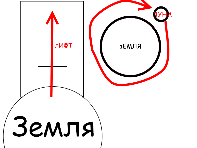 нарисуйте в тетради траектории движения:а)движущегося вверх лифта относительно Земли,б)Луны относительно Земли