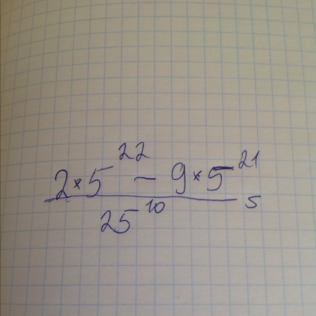 5 ²¹ * (2 * 5 - 9) (5²)¹⁰ =5 ²¹ * 1 5 ²⁰ = 5 ²¹⁻²⁰ = 5¹ =5