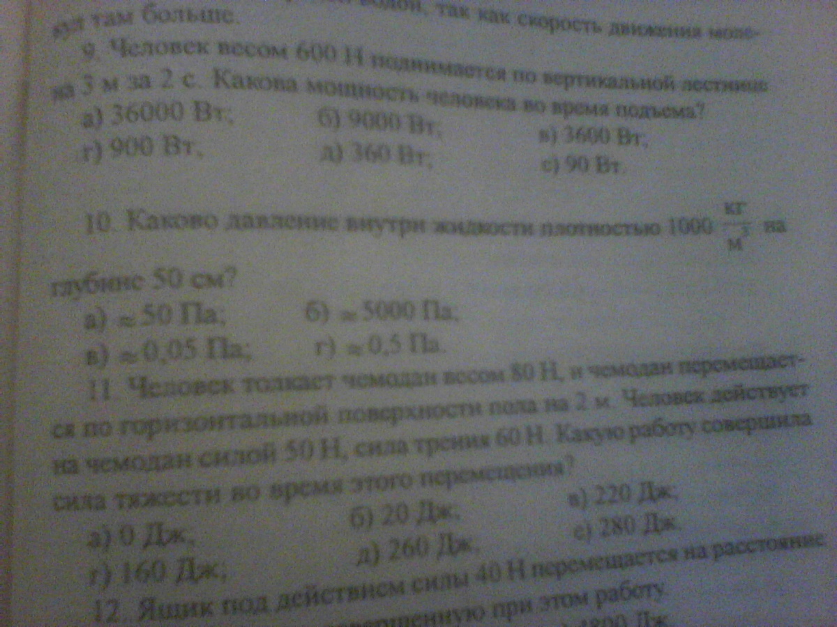 9) мощность N, P- вес человека, A-работа, s- путь