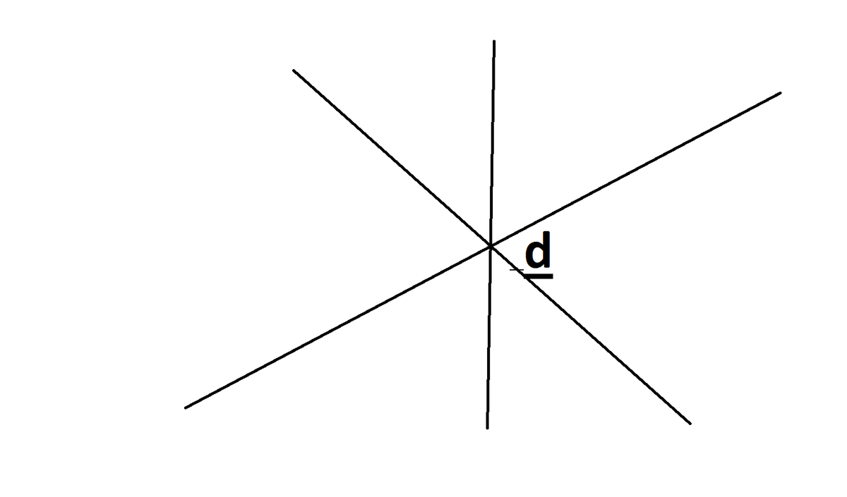 Начертите две пересекающиеся прямые a и b и обозначьте точку их пересечения буквой d.Проведите через точку d еще одну прямую,отличную от a и b.Сколько получилось лучей с началом в точке d?Сколько можно построить прямых,проходящих через точку d?
