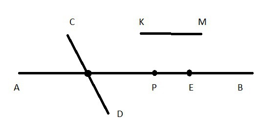 Начертите прямую АВ и отрезки CD, КМ и РЕ ' ак, чтобы отрезок CD пересекал прямую АВ, отрезок КМ не пере секал эту прямую, а отрезок РЕ лежал на прямой АВ.