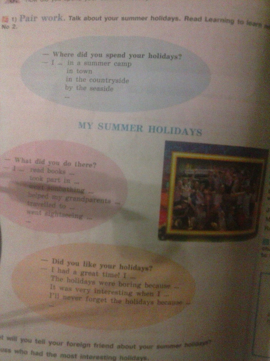 When my summer holidays came I was very happy! The weather was fine so my friends and I went for a walk every day. It was fun! Then I spent a month in the country where my grandfather and grandmother lived. It was great. I drank milk and ate a lot of tasty food which my granny prepared for me. I have many friends in this village because I go there every holidays. We played football and tennis every day! There is a small river near the forest and we swam when the weather was fine. It was great! I liked my holidays very much.