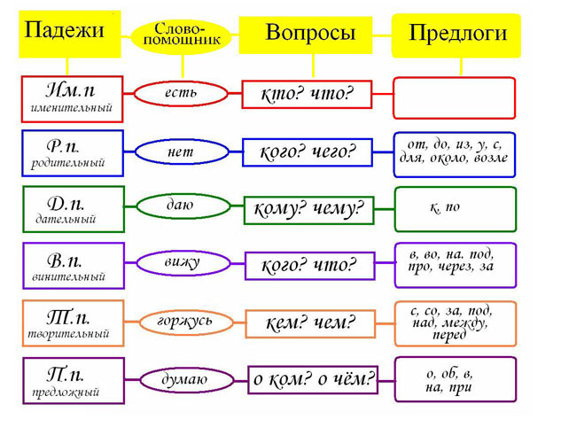 Творительный падеж — творю кем?, чем?, определяет инструмент, некоторые виды временной принадлежности (ночью);