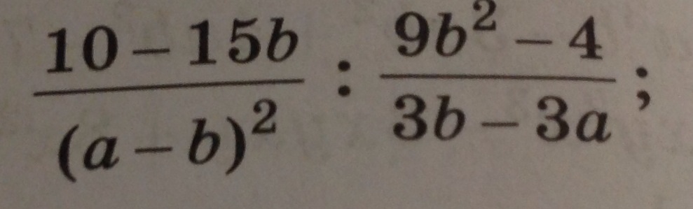 Помогите пожалуйста решить пример. Знаю ответ заранее 15/(a-b)*(3b+2), но не могу к нему прийдти. Заранее спасибо!