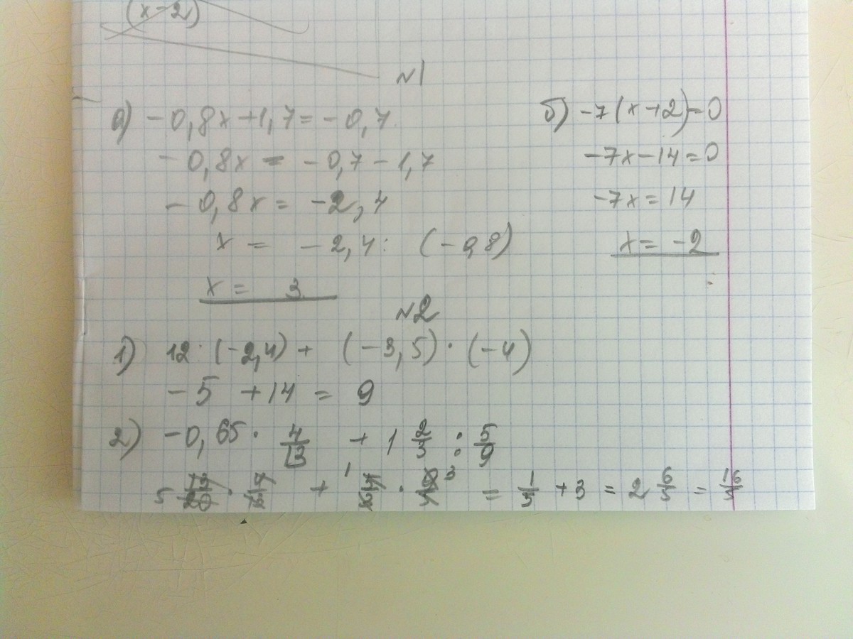 а) -0,8х + 1,7 = -0,7