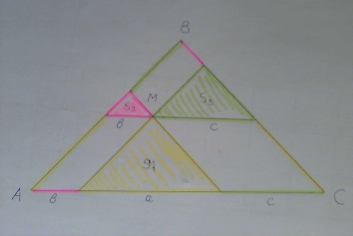 S(ABC) = S1+S2+S3+I+II+III обозначим это равенство (!)