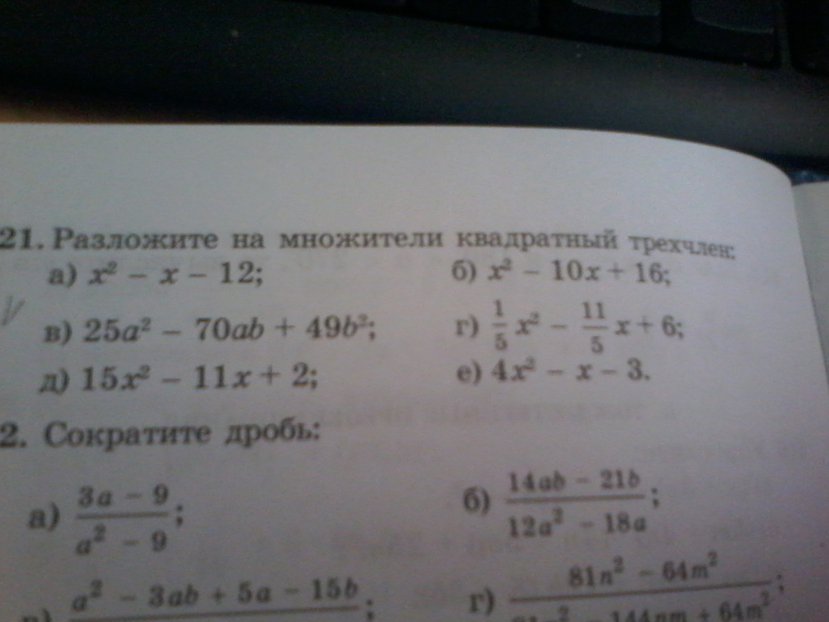 г) 1//5 * x^2 - 11//3 * x + 6=1*15*x^2//5 -11*15*x//3 + 6=3x^2-55x=x(3x-55)